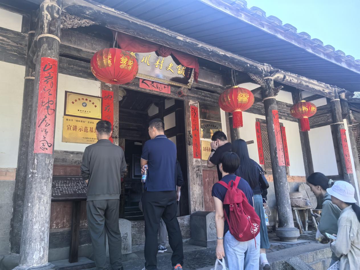 活动中,党员们沿着精心规划的路线,依次参观了村史馆(林宇茂故居)、拾德堂、宋井、天堂宫、抢楼、古老粮仓、云山书院及“樟抱榕”自然奇观。在村史馆与林宇茂故居,大家通过珍贵史料了解了济川深厚的文化底蕴与先辈事迹。漫步于拾德堂、宋井之间,感受着跨越时空的传统美德与历史沧桑。置身于古老的天堂宫、抢楼与粮仓,体悟了先民的智慧与乡土生活的变迁。在书香绵延的云山书院,全体党员对文化传承与教育兴邦有了更深理解。最后,在象征着坚韧与共生的“樟抱榕”景观前,大家无不为之动容,深刻感悟到团结协作、扎根奉献的精神力量。