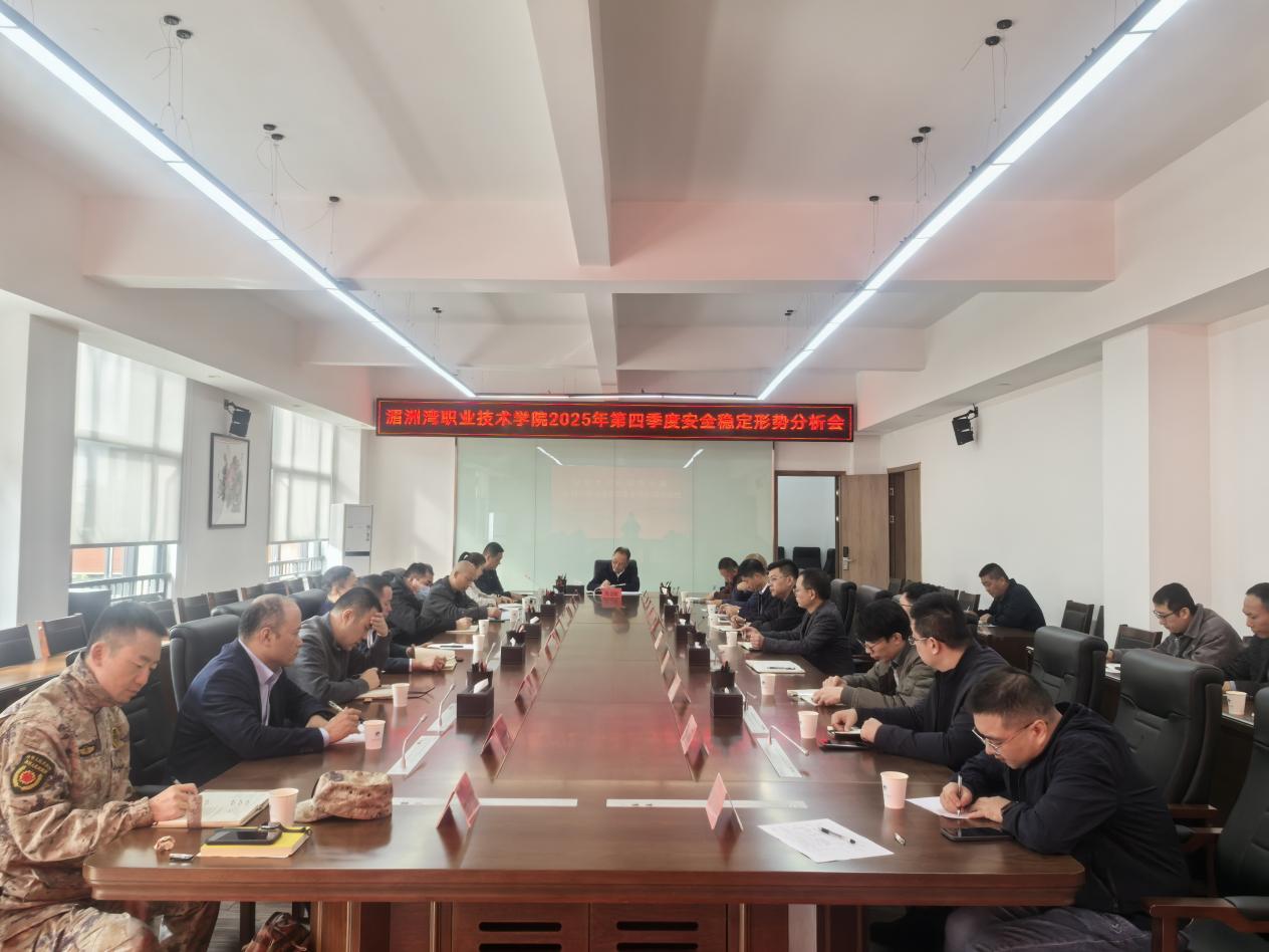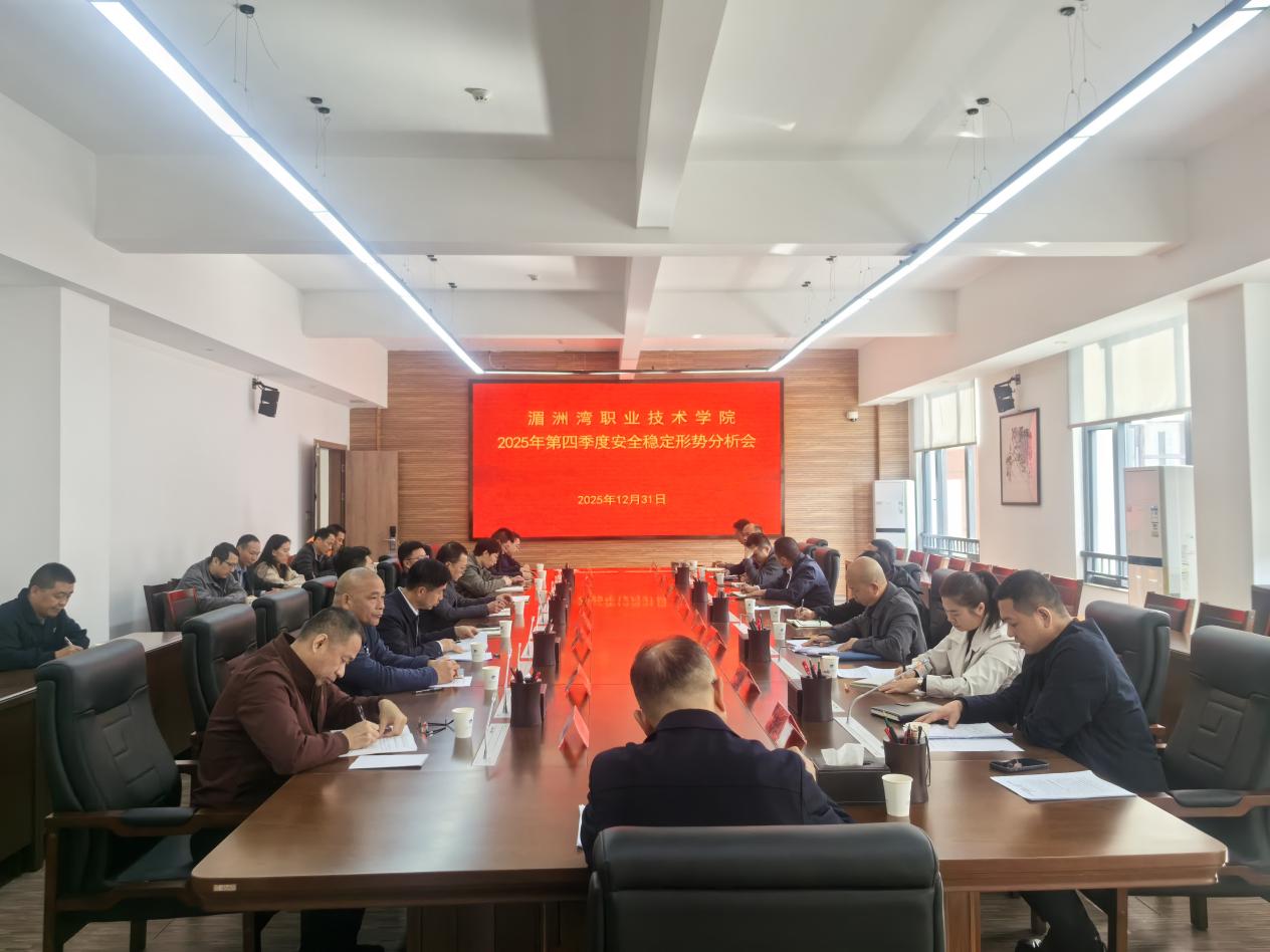 为深入研判当前校园安全稳定形势,扎实做好岁末年初各项安全防范工作,2025年12月31日上午,学院在行政楼中301会议室召开第四季度校园安全稳定形势分析会。学院副院长陈金毓、各相关职能部门主要负责人、各系院书记、安全保卫处全体人员出席会议。会议由安全保卫处处长陈朝军主持。