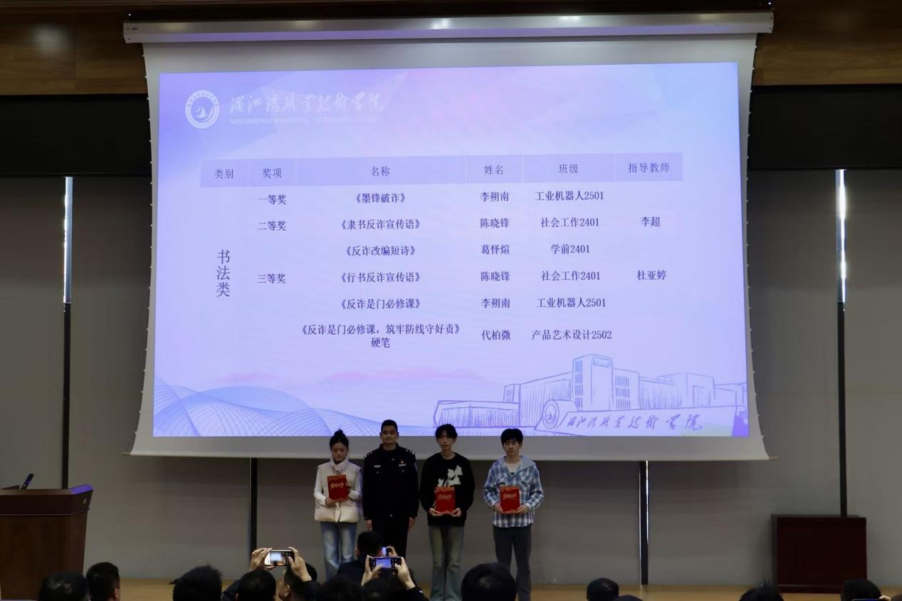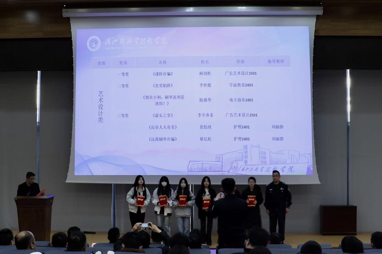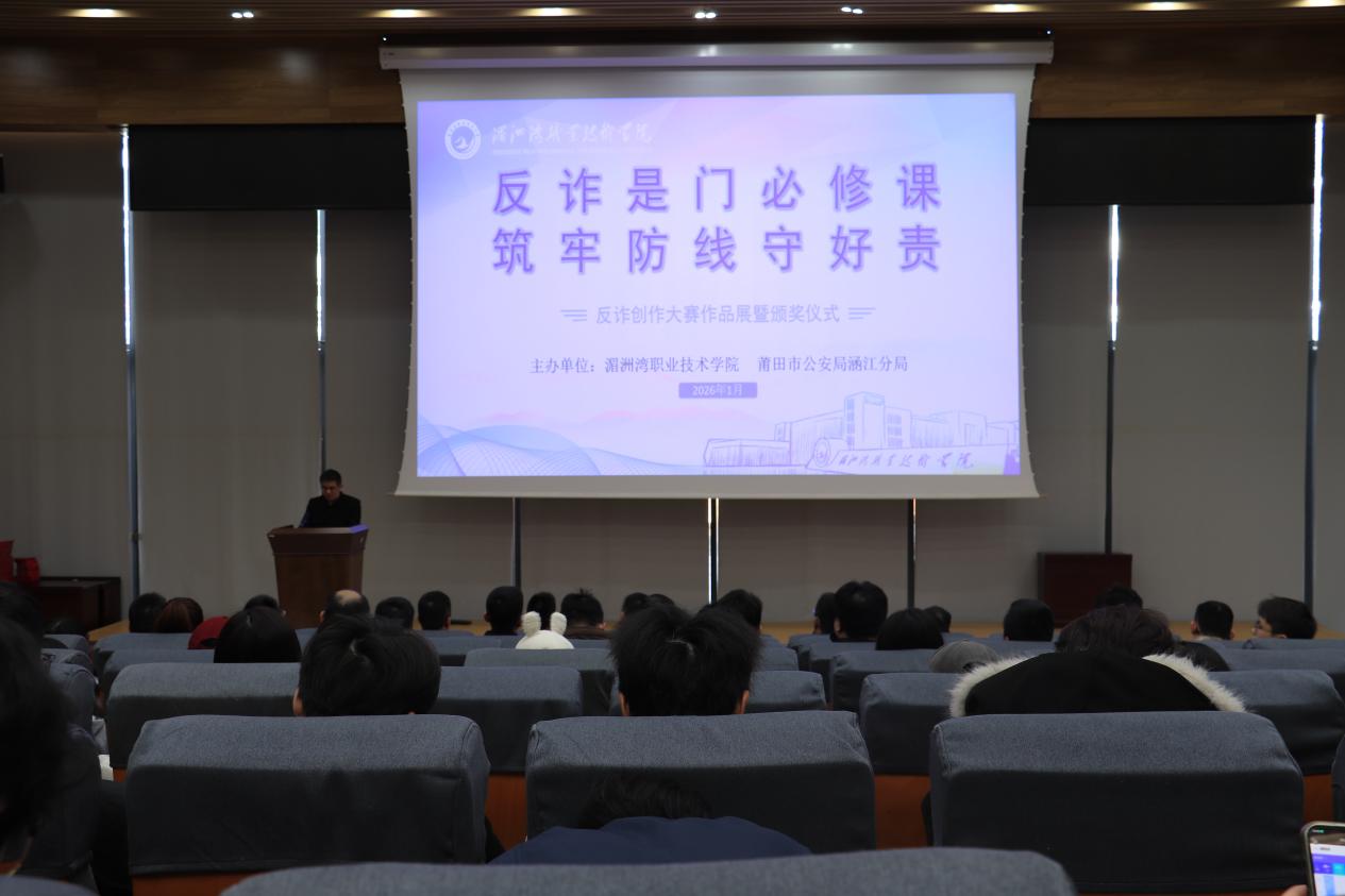 1月13日下午,湄洲湾职业技术学院、莆田市反诈骗中心、涵江区机制办“反诈是门必修课 筑牢防线守好责”反诈创作大赛作品展暨颁奖仪式在湄洲湾职业技术学院信息楼学术报告厅举行。