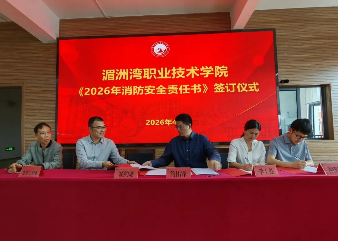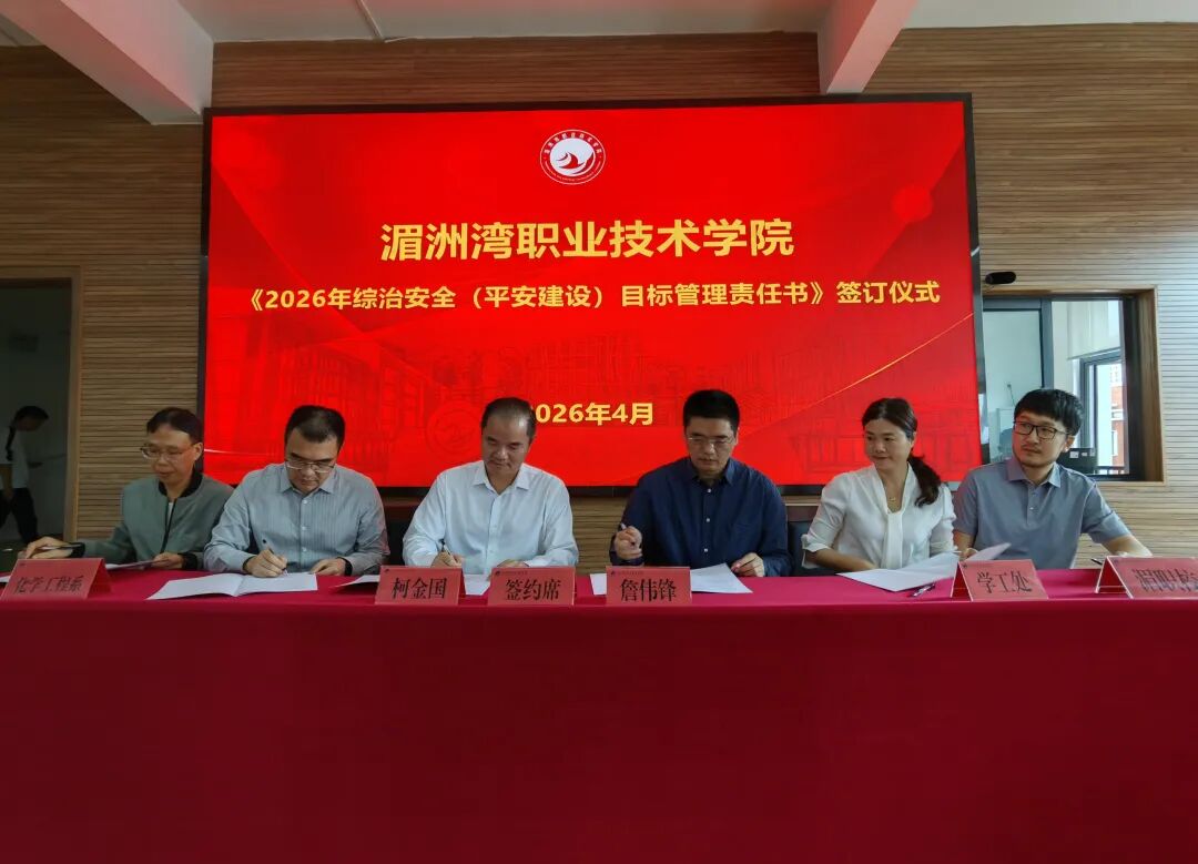 会上,柯金国、詹伟锋与学生工作处、化学工程系、福建省湄洲湾职业技术学校代表签订《2026年综治安全(平安建设)目标管理责任书》,詹伟锋与学生工作处、化学工程系、福建省湄洲湾职业技术学校代表签订《2026年消防安全责任书》。