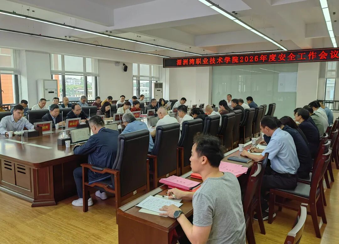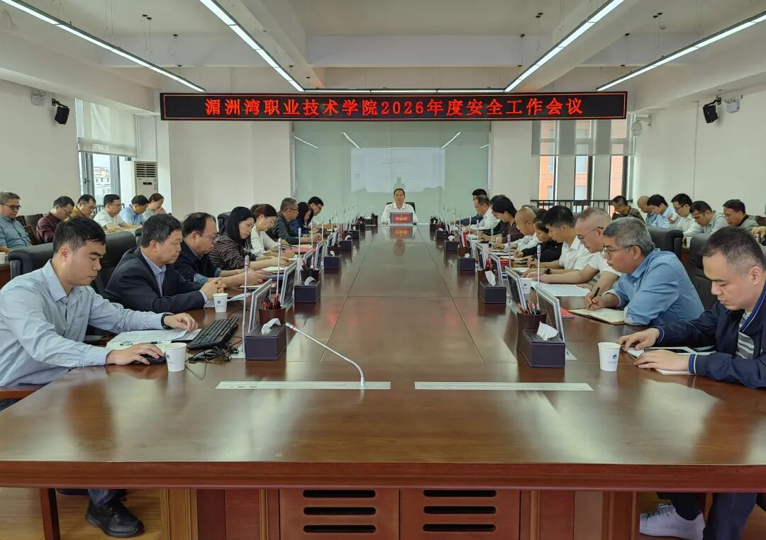 4月24日上午,湄洲湾职业技术学院2026年度安全工作会议举行。学院党委书记柯金国讲话,院长詹伟锋主持,院领导陈金毓、阮春高、张凡、兰希红出席,各部门、各教辅机构、马克思主义学院、基础教育学院、继续教育学院负责人,各系院党政负责人,莆田市高级技工学校、福建省湄洲湾职业技术学校、莆田卫生学校负责人等参加。